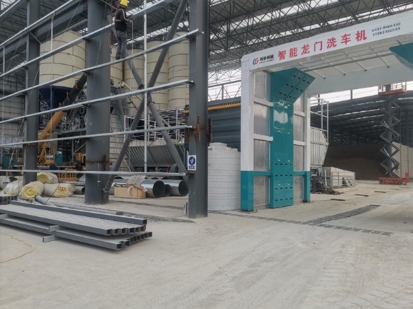 鋼聯(lián)攪拌站專用龍門式洗車機安裝中